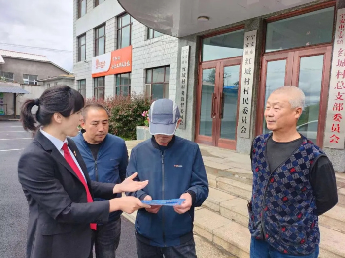 6月6日,刑事审判庭干警前往宁安市宁安镇柳林村、向阳村、临江村、新胜村、教育村,通过悬挂横幅、发放法治宣传单、现场答疑等多种形式,向村民们宣传与其生活息息相关的法律知识。同时,向村民们介绍省高院研发的“龙法和”云法庭小程序。