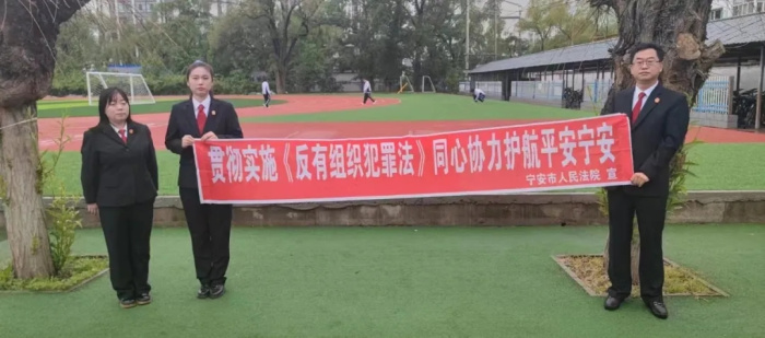 6月4日,刑事审判庭干警们深入社区、学校,通过悬挂宣传条幅、发放宣传单等多种形式开展扫黑除恶、《中华人民共和国反有组织犯罪法》宣传活动。