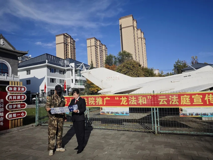 活动中,干警们通过张贴“龙法和”云法庭小程序二维码宣传海报、悬挂宣传条幅,发放宣传手册等方式,向老百姓详细介绍“龙法和”云法庭的功能特点及操作流程,大家也纷纷拿出手机进行扫码体验,同时立案庭的干警也对群众演示了如何运用“龙法和”云法庭小程序当事人端申请网上立案、线上调解、法律咨询、联系法官等功能,面对面讲解“龙法和”云法庭的功能优势,实现在线调解纠纷、在线咨询等“云程序”,为外地人员进行诉讼提供了极大便利,节省了时间和空间成本。