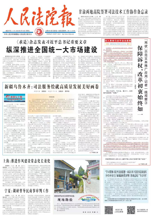 2025年9月16日,《人民法院报》头版刊发了《保障诉权,改革初衷始终如一》,文章中提到宁安市人民法院在“两状”示范文本推广应用过程中的经验做法。