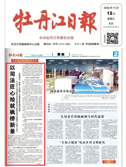 11月12日,《牡丹江日报》刊发了《以司法匠心绘就枫桥新景——宁安市人民法院坚持发展新时代“枫桥经验”和继承“金桂兰民生审判模式”,创新工作机制,不断激发服务强劲动能》。