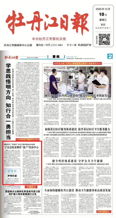 2025年12月10日,《牡丹江日报》刊发了《调解员有了"活教材",群众矛盾化解跑出加速度——宁安法院案例库"落户"综治中心》,对宁安市人民法院将案例库"落户"综治中心的经验做法进行报道。