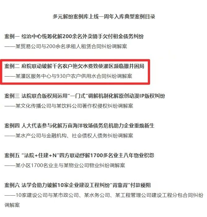 ——某灌区服务中心与930户农户供用水合同纠纷调解案